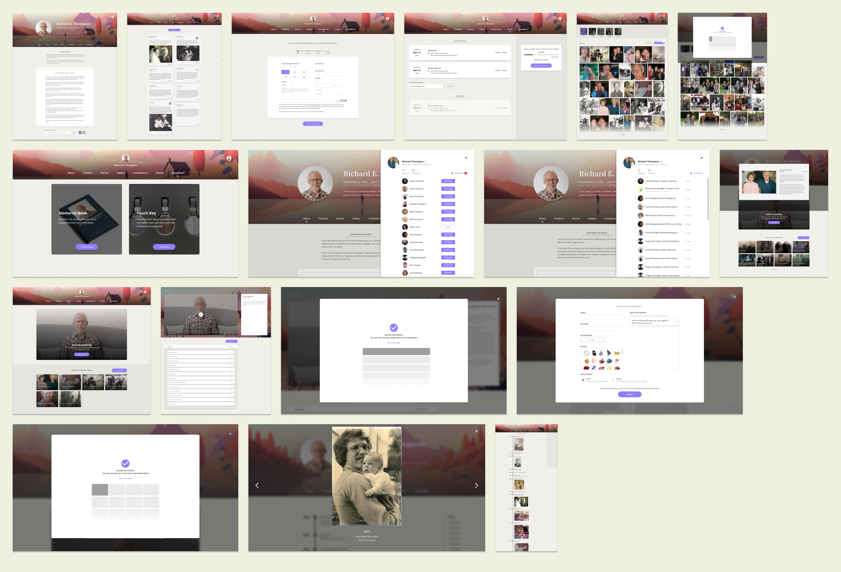 Concept Development: Developed initial sketches and digital mock-ups of Revere TOUCH, focusing on features like digital floral tributes, gallery viewing, and allowing families to create and leave meaningful messages.