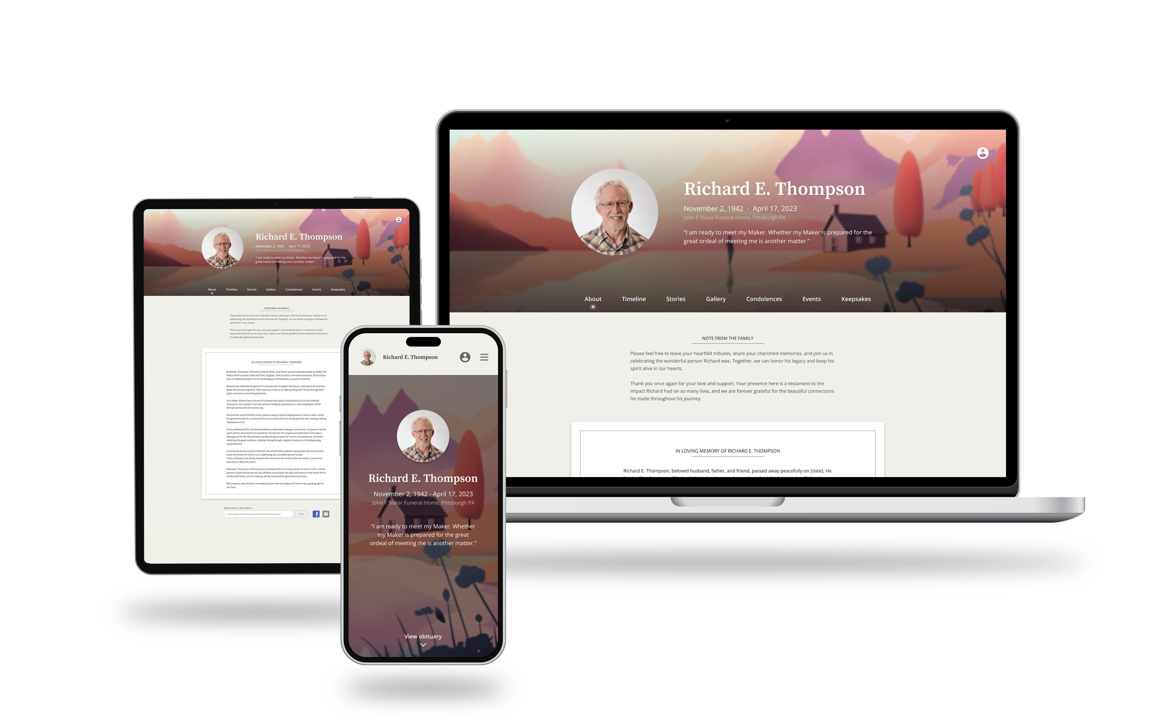 Revere was founded with a mission to redefine the memorial experience for the next generation. Through innovative design and cutting-edge technology, we aim to create personalized, meaningful tributes that truly celebrate life. Our platform fosters deeper connections between families and their loved ones, empowering funeral homes to offer collaborative, evolving memorials that allow families to continuously engage and honor their cherished memories.